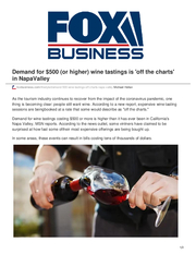 Demand for wine tastings costing $500 or more is higher than it has ever been in California's Napa Valley, MSN reports. According to the news outlet, some vintners have claimed to be surprised at how fast some of their most expensive offerings are being bought up.